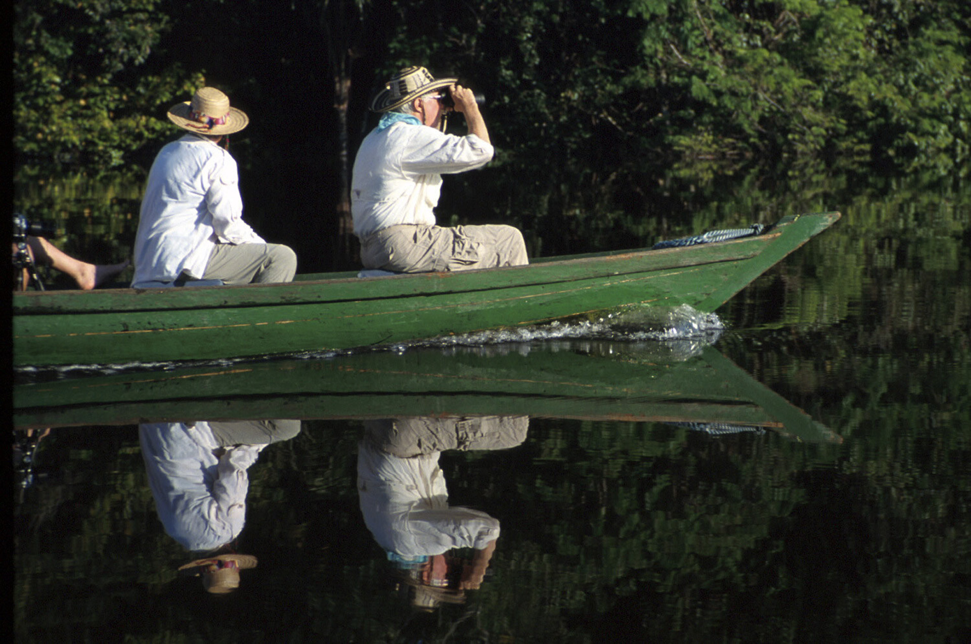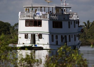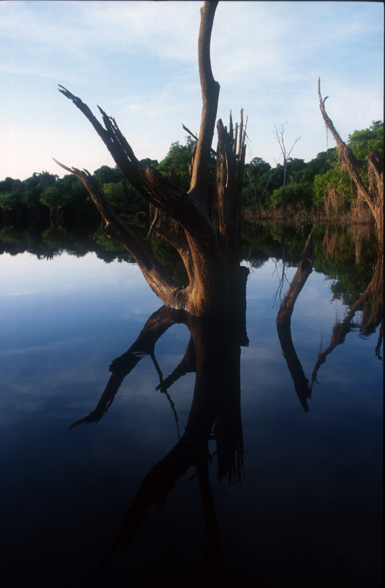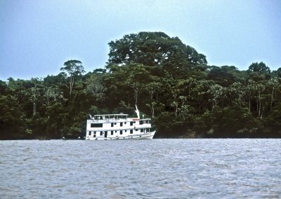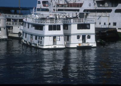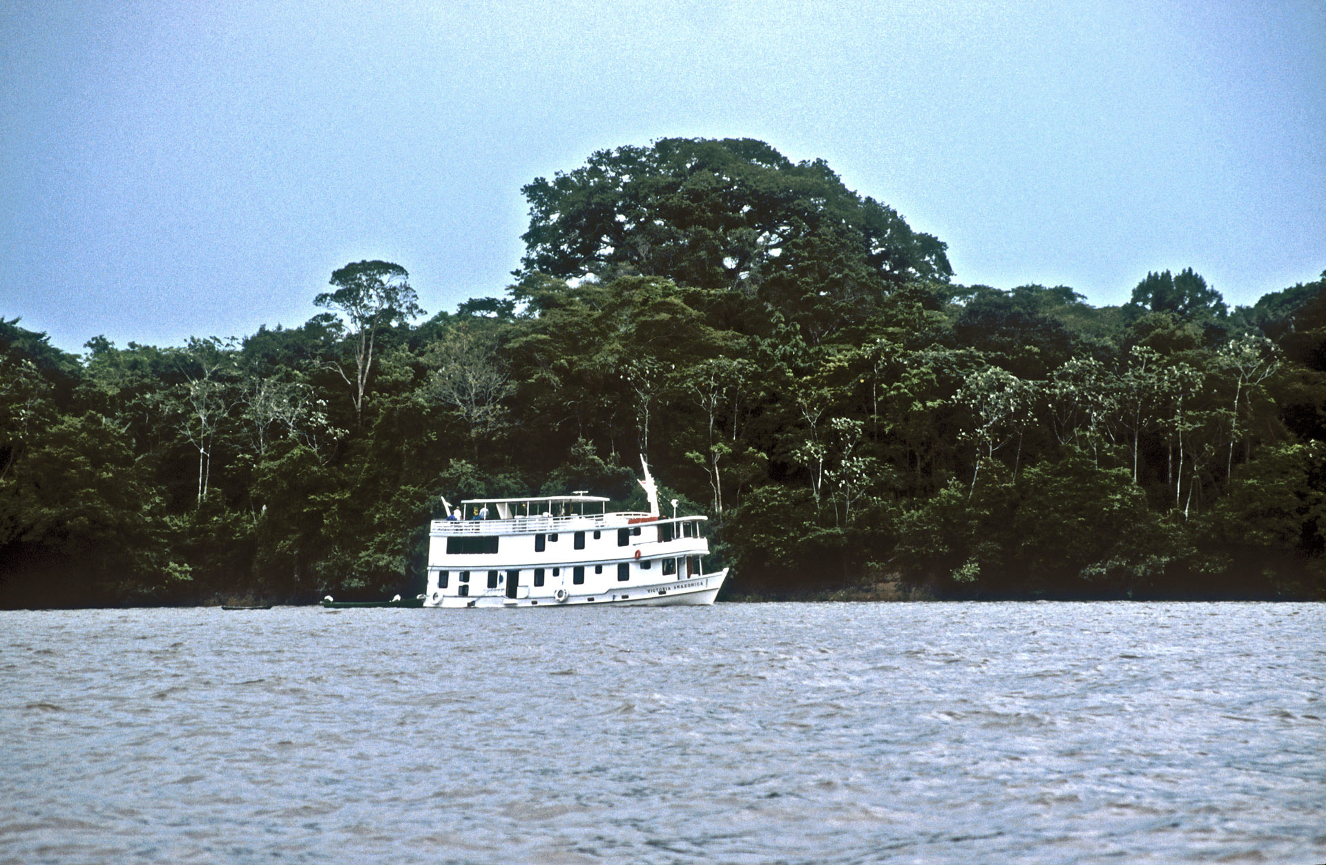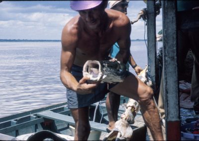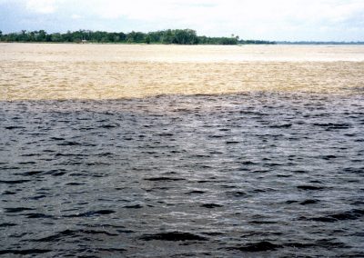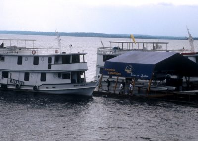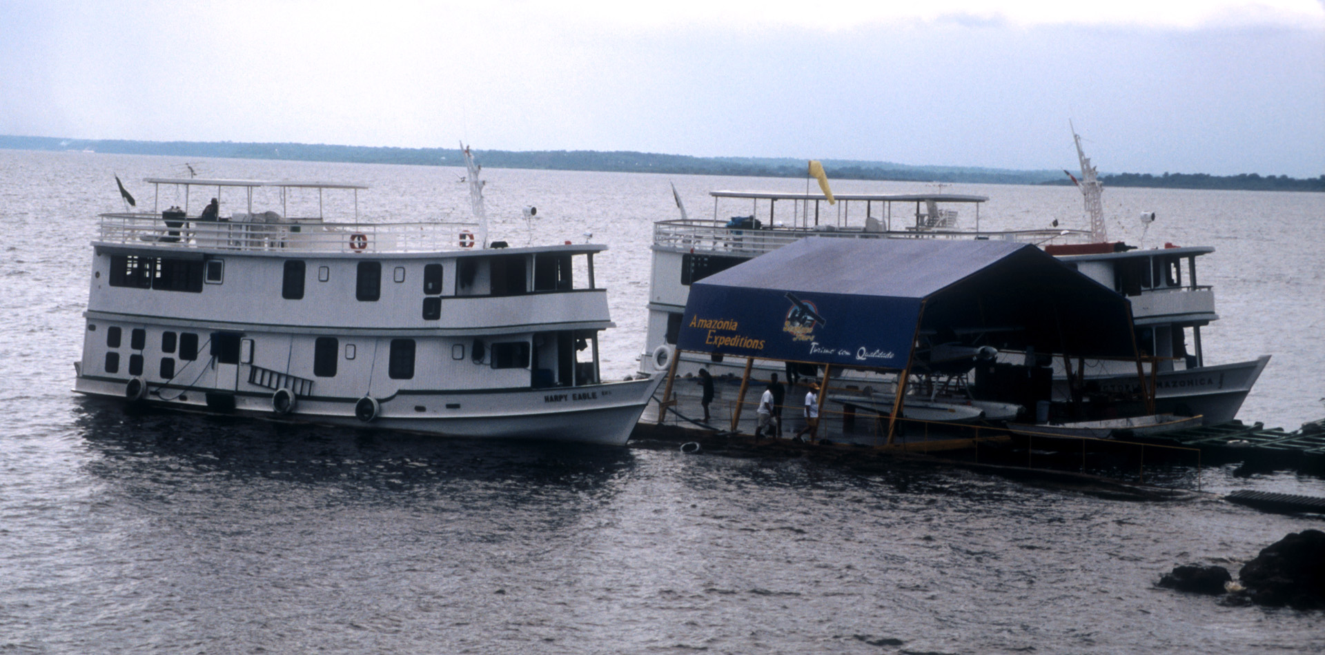 We traveled to the Brazilian Amazon six different times with the New York Botanical Gardens, trips organized and led by Scott Mori, Tropical Botanist, and his wife Carol Gracie, photographer.  All the trips were with Moacir Fortes, Amazonia Expeditions (tours are now with Moacir Fortes, Jr).  We flew into Manaus, boarded one of his boats and began a 10 day adventure along two of the rivers of the Amazon rainforest. the Solomon’s (becomes the Amazon) and the Rio Negro.  Manaus is on the Rio Negro shortly north of where the Rio Negro joins the Rio Solomoes and then the two become the Rio Amazonas.  Because of color and temperature difference, the two rivers flow side by side slowly merging into one color, that of the Rio Amazonas. Our final trip with Mo and Scott and Carol was a trip that started by flying into