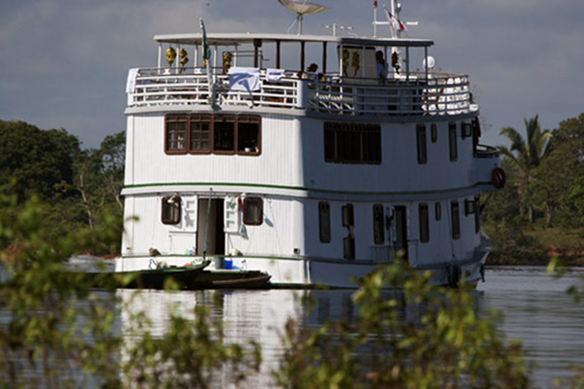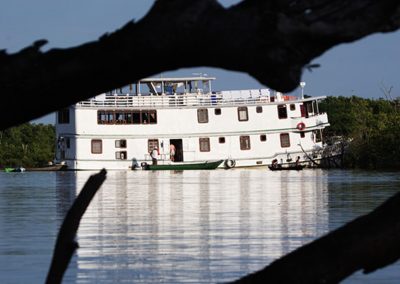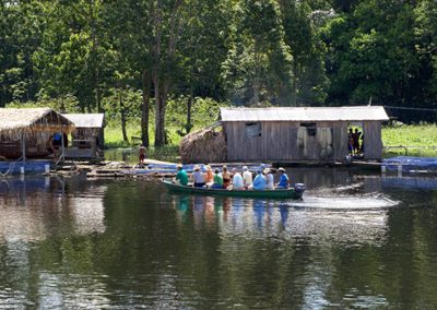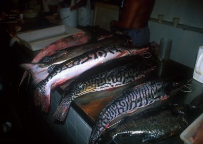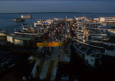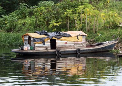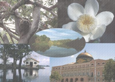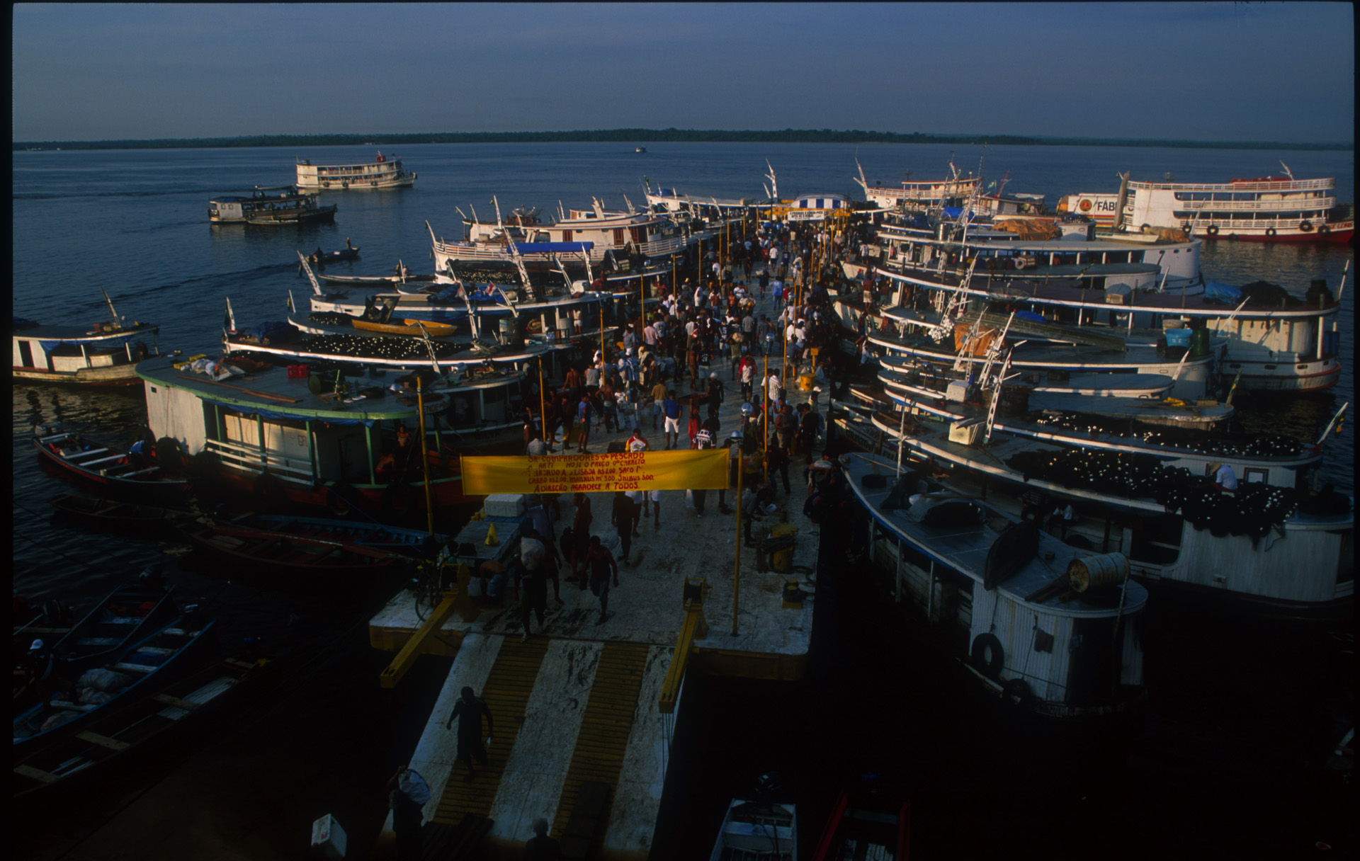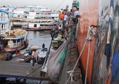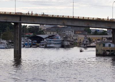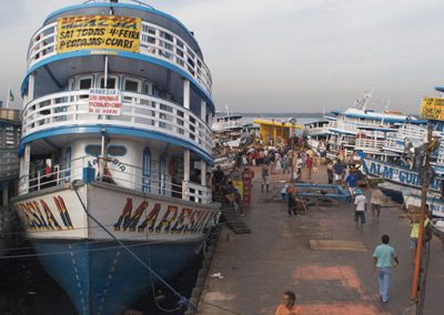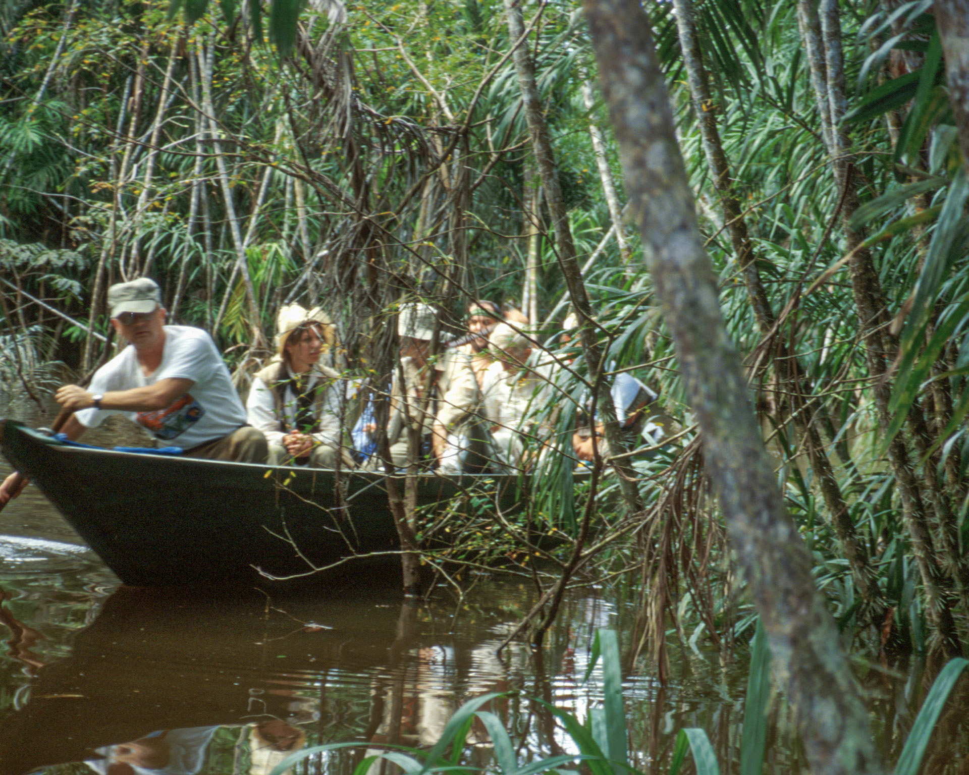 We traveled to the Brazilian Amazon six different times with the New York Botanical Gardens, trips organized and led by Scott Mori, Tropical Botanist, and his wife Carol Gracie, photographer.  All the trips were with Moacir Fortes, Amazonia Expeditions (tours are now with Moacir Fortes, Jr).  We flew into Manaus, boarded one of his boats and began a 10 day adventure along two of the rivers of the Amazon rainforest. the Solomon’s (becomes the Amazon) and the Rio Negro.  Manaus is on the Rio Negro shortly north of where the Rio Negro joins the Rio Solomoes and then the two become the Rio Amazonas.  Because of color and temperature difference, the two rivers flow side by side slowly merging into one color, that of the Rio Amazonas. Our final trip with Mo and Scott and Carol was a trip that started by flying into